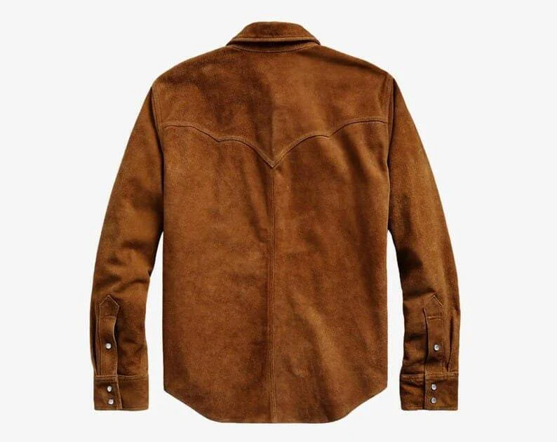 Elevate your style with our Men’s Suede Western Leather Shirt, a versatile blend of rugged charm and modern sophistication. Crafted from genuine suede leather in a rich brown tone, this button-down shirt features chest pockets and a tailored fit, perfect for casual or semi-formal occasions.